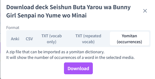 - This is different than downloading Anki decks from Jiten and friends, because it's specifically words you need to know.