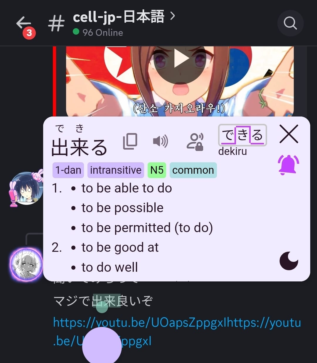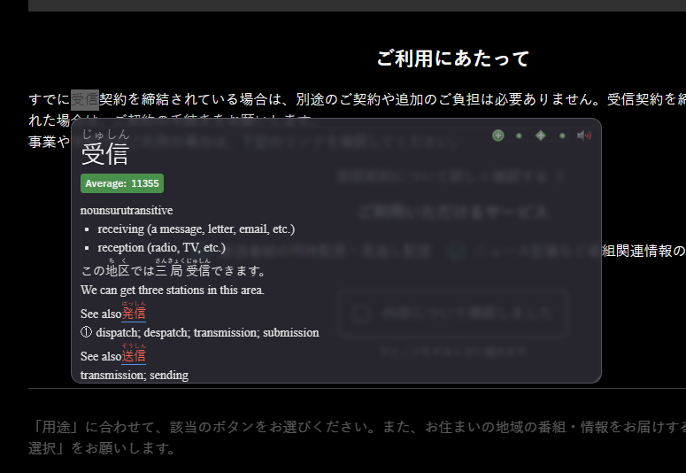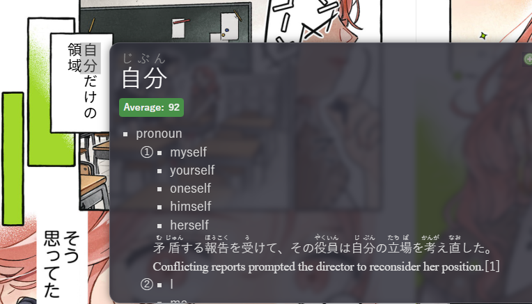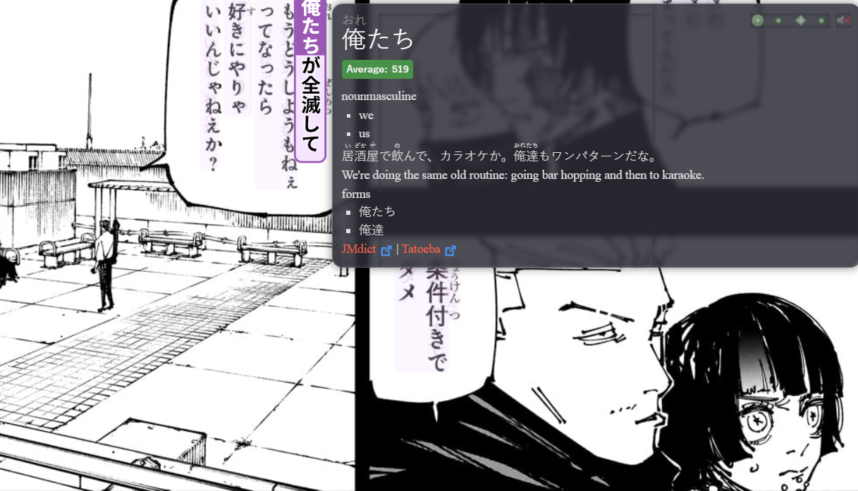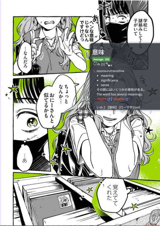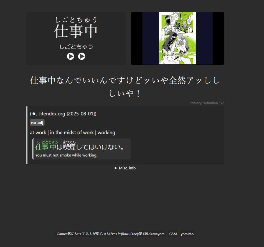 Use the overlay to directly look words up (using Yomitan) in your game, anime, or manga without needing to go to another website to look it up.