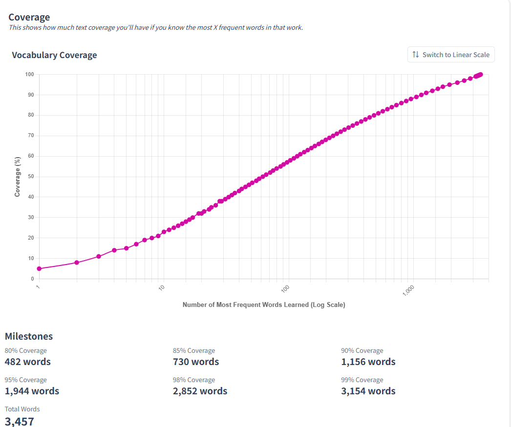 For example, in this anime to understand 95% of it you just need to know the most frequency 1944 words that appear in it.