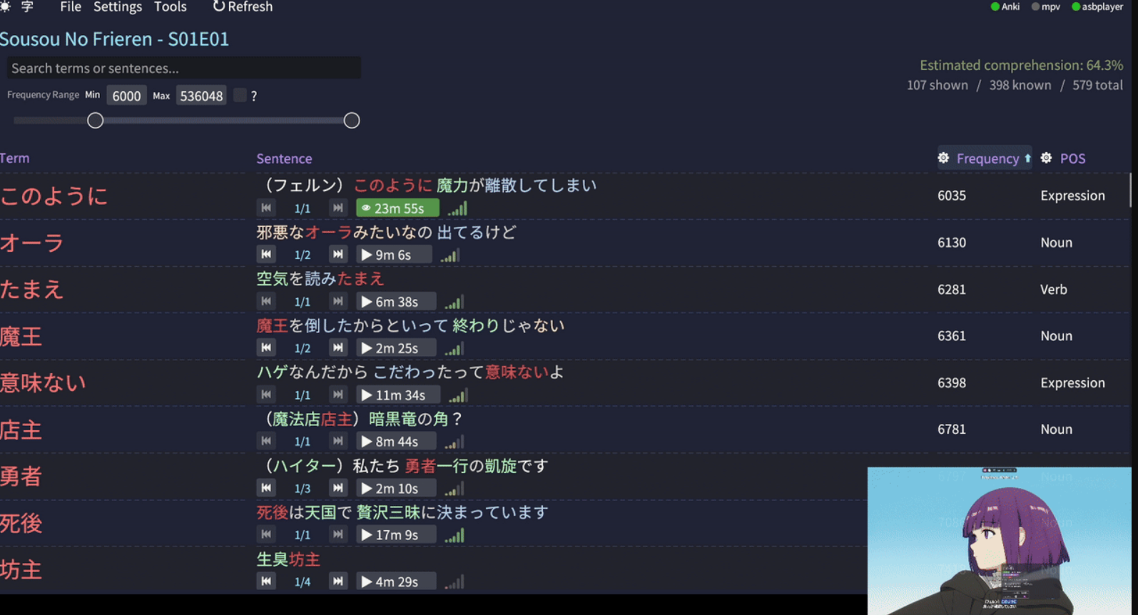 No worries, Jiten lets you download Anki decks with the exact freq order of that show. Learn the words you need to know for the media you want to watch.