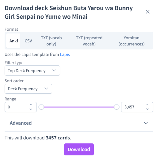 - This is different than downloading Anki decks from Jiten and friends, because it's specifically words you need to know.