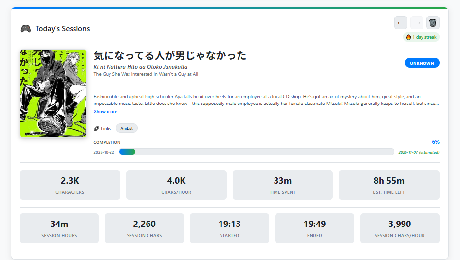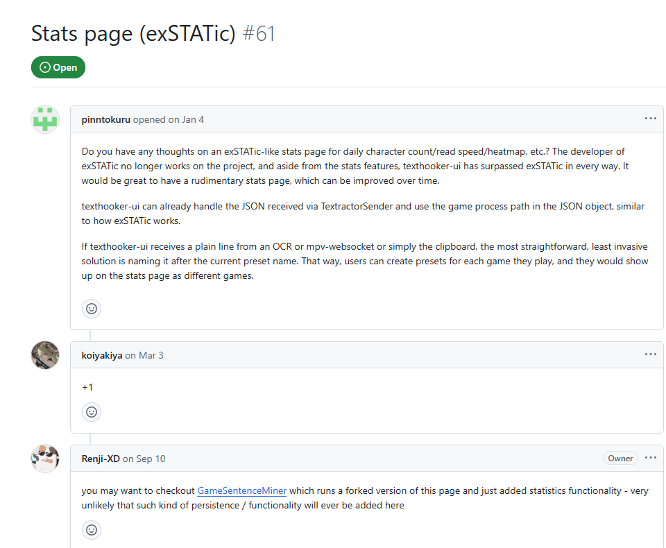 It's also not as automatic as Mangatan, if you want nice stats you need to tell GSM you're reading something new.