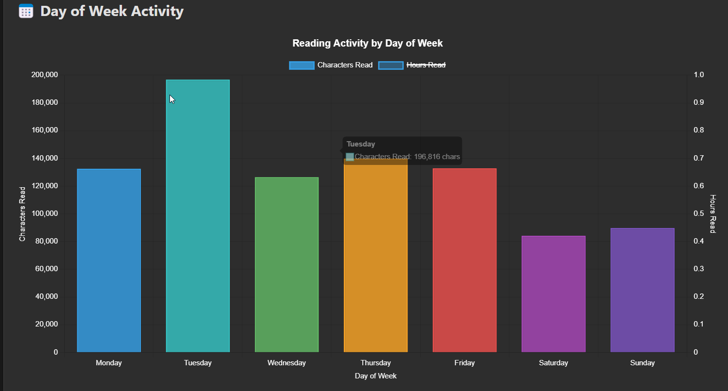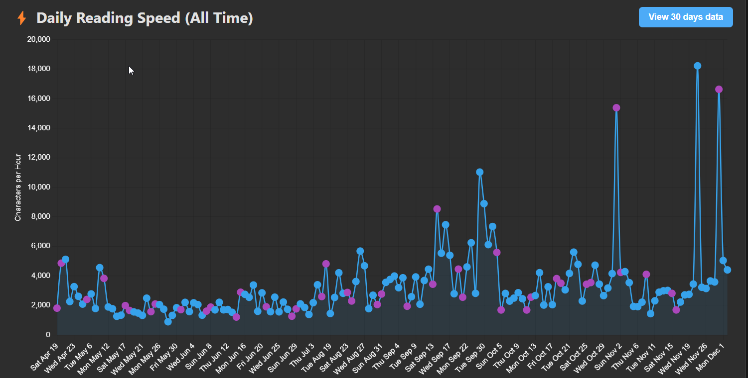 Analyse your statistics to help you learn to read better, over 30+ graphs and extensive goal planning.