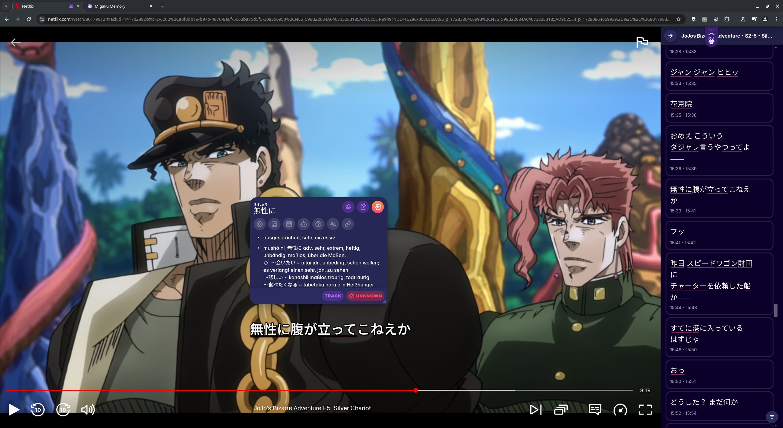 Migaku works on Netflix and Disney+, but all of these screenshots use their local player. This is just a DVD I'm playing 😃