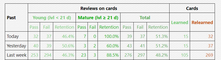 - Overtime Anki retention will become okay again