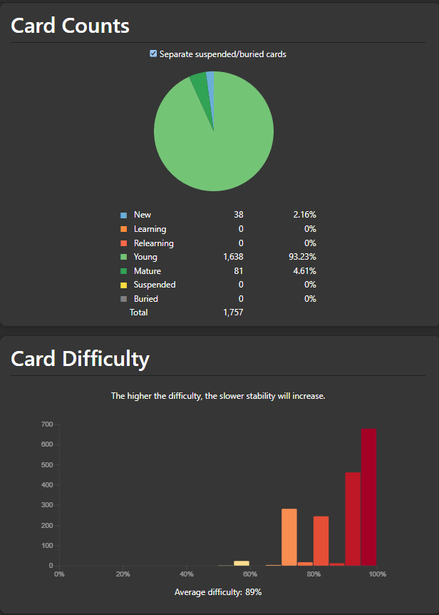 For some people using Anki with FSRS you will have a very high Anki median difficulty: