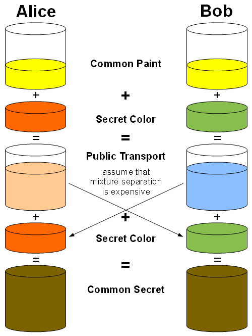 In the colour analogy, this is taking Alice’s paint colour and adding it to Bob’s paint colour.