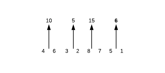 $$4 + 6 \; 3 + 2 \; 8 + 7 \; 5 + 1$$