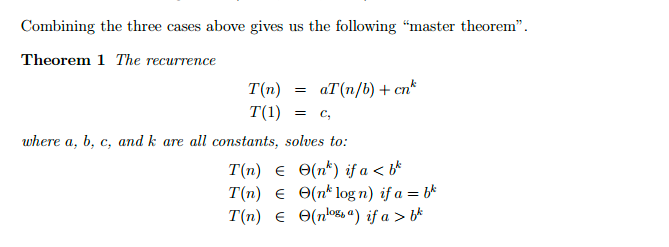 Iām going to let you in on a little secret. Itās possible to work out the time complexity of an algorithm from its recurrence. You can use something called the Master Theorem to work it out. This is the theorem in a nutshell: