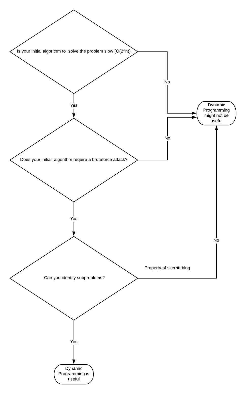 Before we even start to plan the problem as a dynamic programming problem, think about what the brute-force solution might look like. Are sub-steps repeated in the brute-force solution? Ā If so, we try to imagine the problem as a dynamic programming problem.
