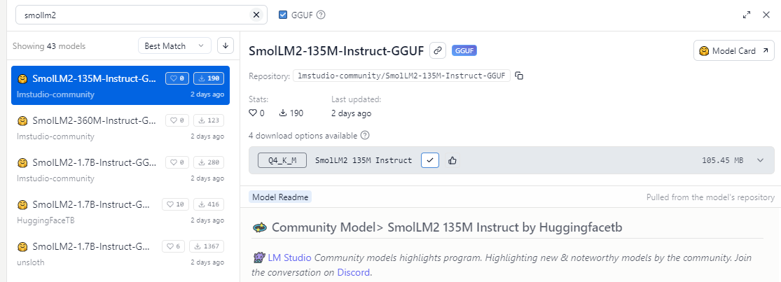 You may notice the default Llama model is slow. Not to worry! Click on Search and look for SmolLM2-360m.