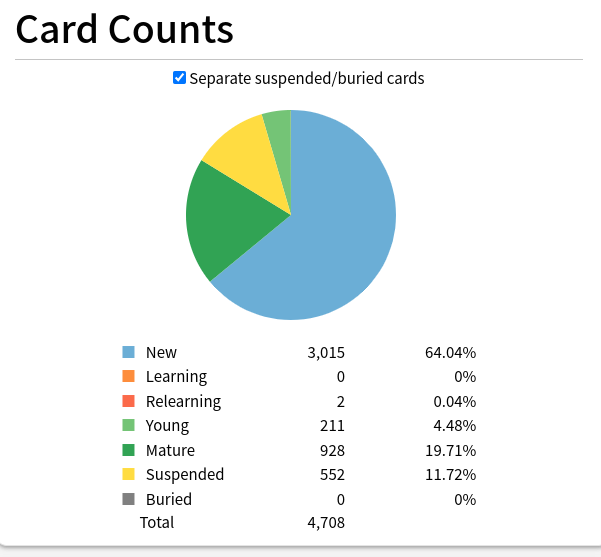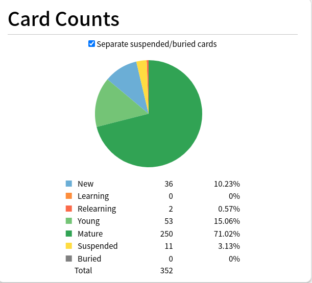 I do 20 new cards a day.