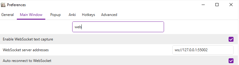 Set the addresses to use port 55002 and set it to auto reconnect to WebSocket.