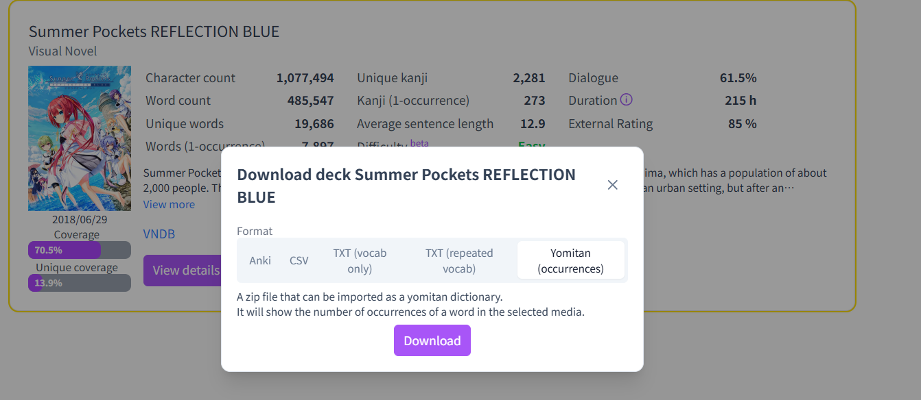 The folder should contain the unzipped Yomitan occurrence dictionary.