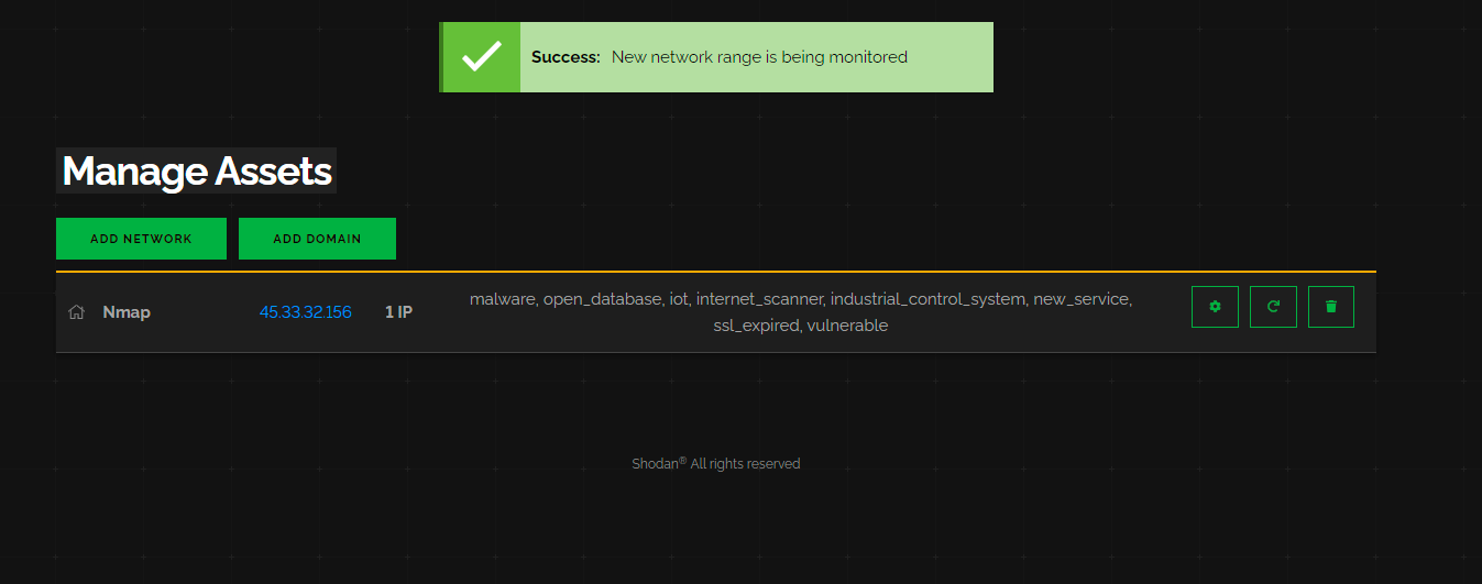If we click on the settings cog, we can see that we have a range of “scans” Shodan performs against our network.