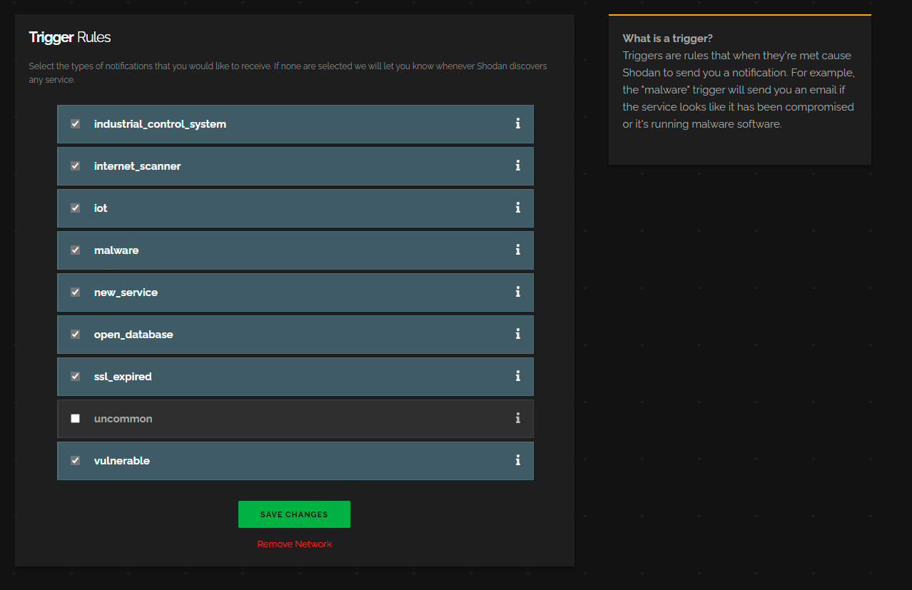 The interesting part is that you can actually monitor other peoples networks using this. For bug bounties you can save a list of IPs and Shodan will email you if it finds any problems.