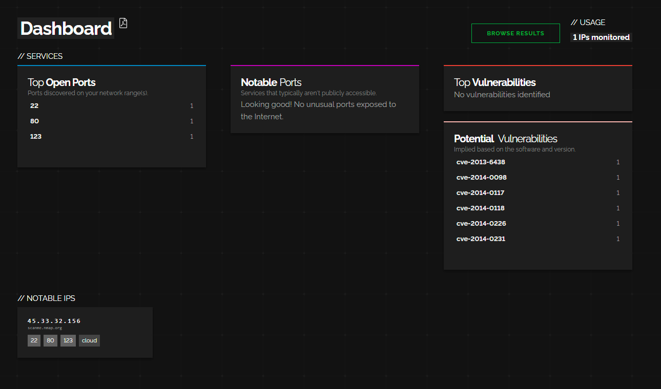 Keep track of the devices that you have exposed to the Internet. Setup notifications, launch scans and gain complete visibility into what you have connected.