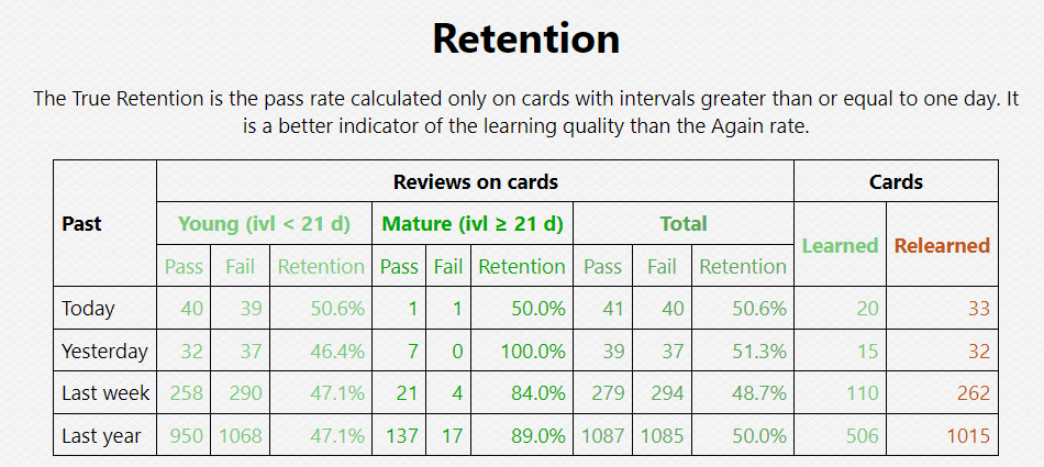 and this retention is significantly better (although its a lot less cards! 1/2 new max a day)