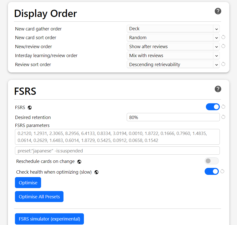 today i got rid of learning steps for new cards to let fsrs handle them (as i saw you post about that), and i have 10m relearning step for lapses leeches on, threshold 10 with suspend (i will just remine it. sometimes i make kanji cards too) i am doing rrtk450, i am at around 350/450 and its helped. i also make kanji cards myself if i know all the kanji apart from one, i just do kanji -> keyword in english