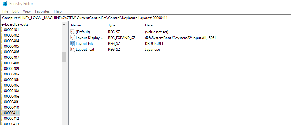 [HKEY_LOCAL_MACHINE\SYSTEM\CurrentControlSet\Control\Keyboard Layouts\00000411]